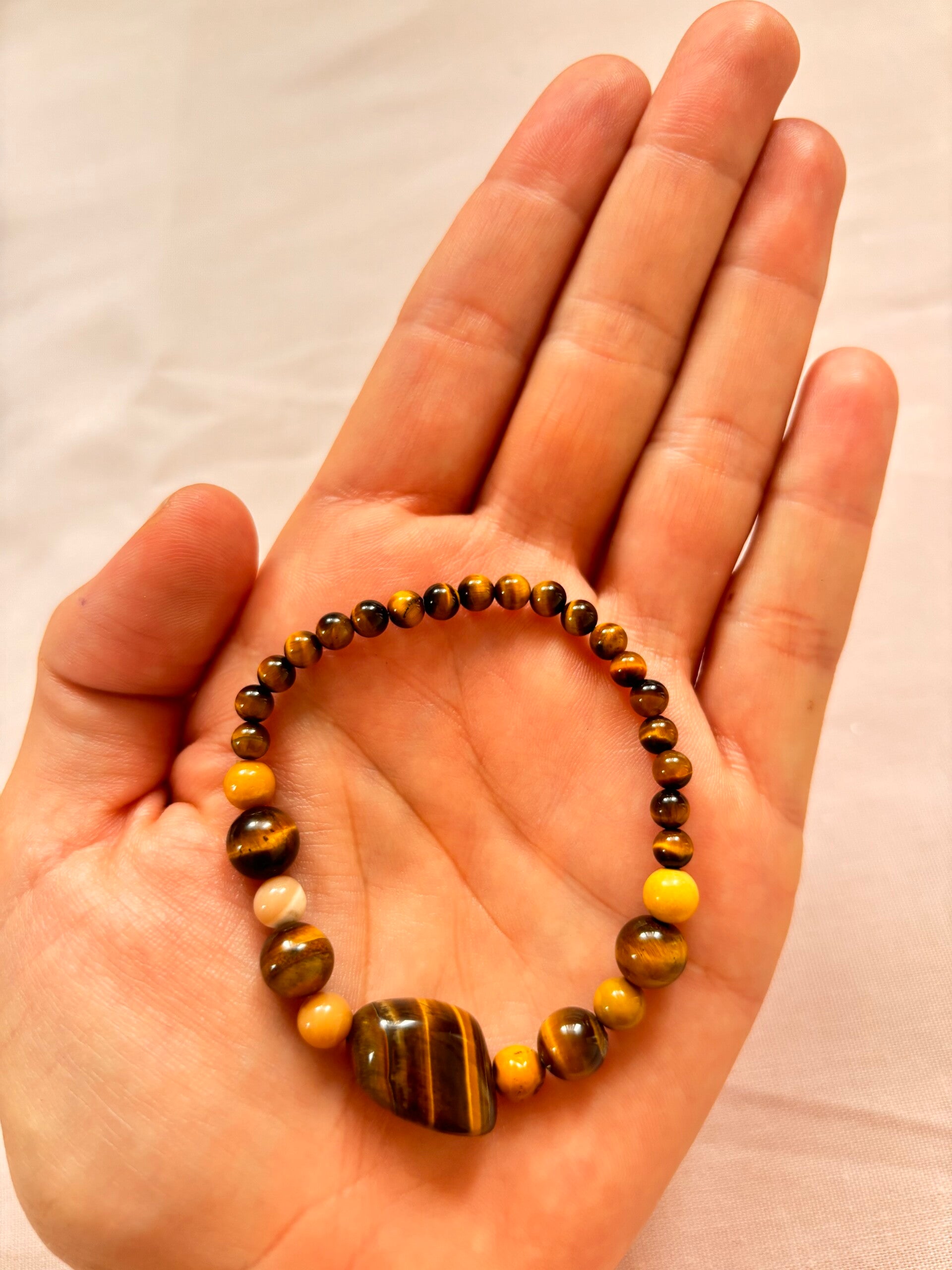 Dieses liebevoll von Hand gefertigte Armband vereint zwei kraftvolle Edelsteine: Tigerauge stärkt deine Klarheit und deinen Mut – Mookait schenkt dir inneren Halt und die sanfte Erinnerung, dass Veränderung sicher ist. Gemeinsam unterstützen sie dich dabei, geerdet und gleichzeitig flexibel zu bleiben – besonders in Phasen von Wandel, Entscheidungsdruck oder emotionalem Auf und Ab.
